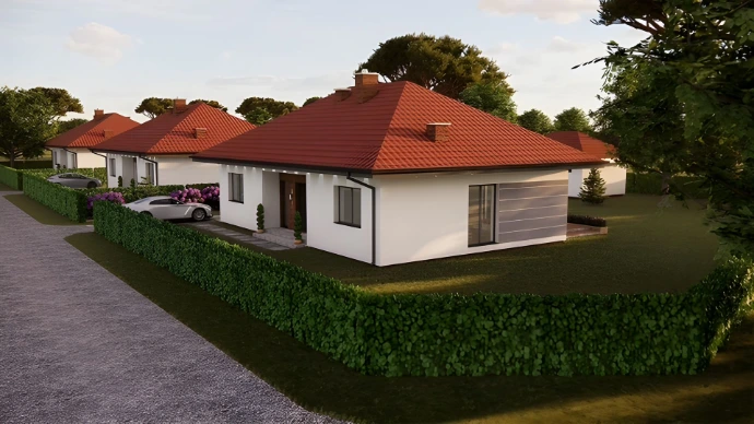 Stan surowy bez okien z dachem, gotowy do aranżacji.